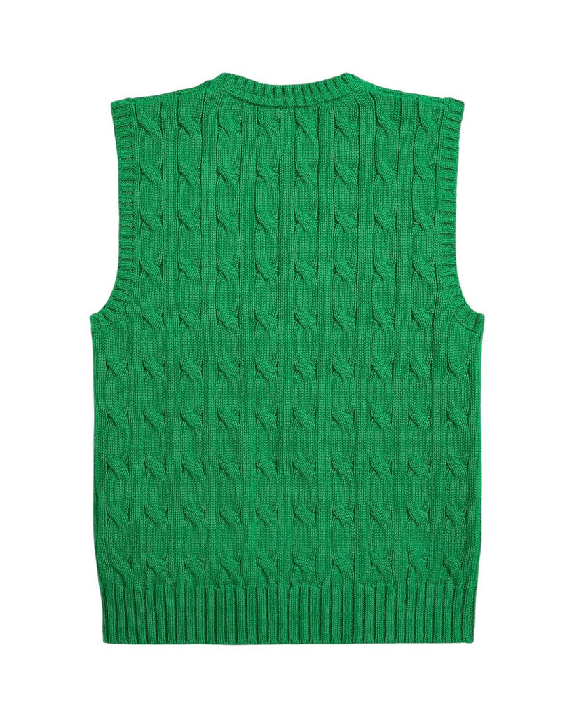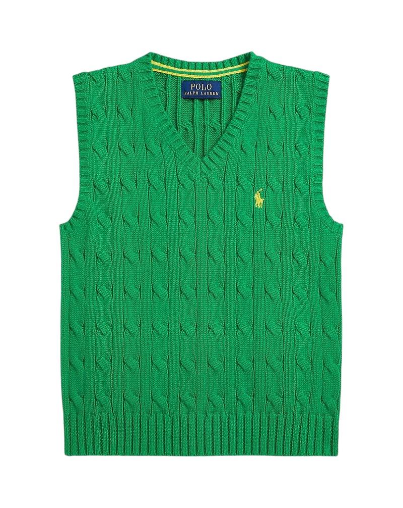 Gilet in maglia a trecce verde con logo per neonato e bambino