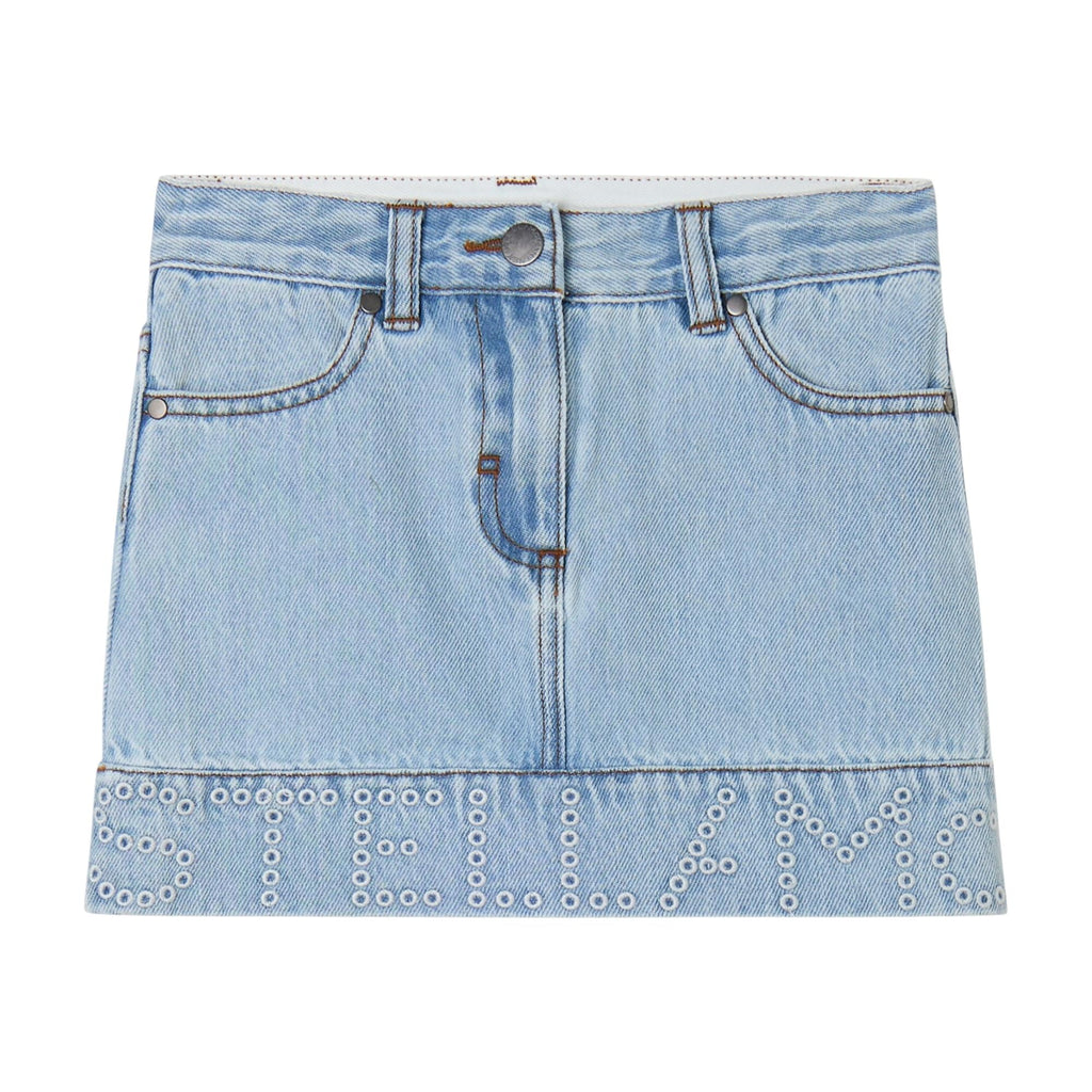 Gonna in denim chiaro con logo per bambina