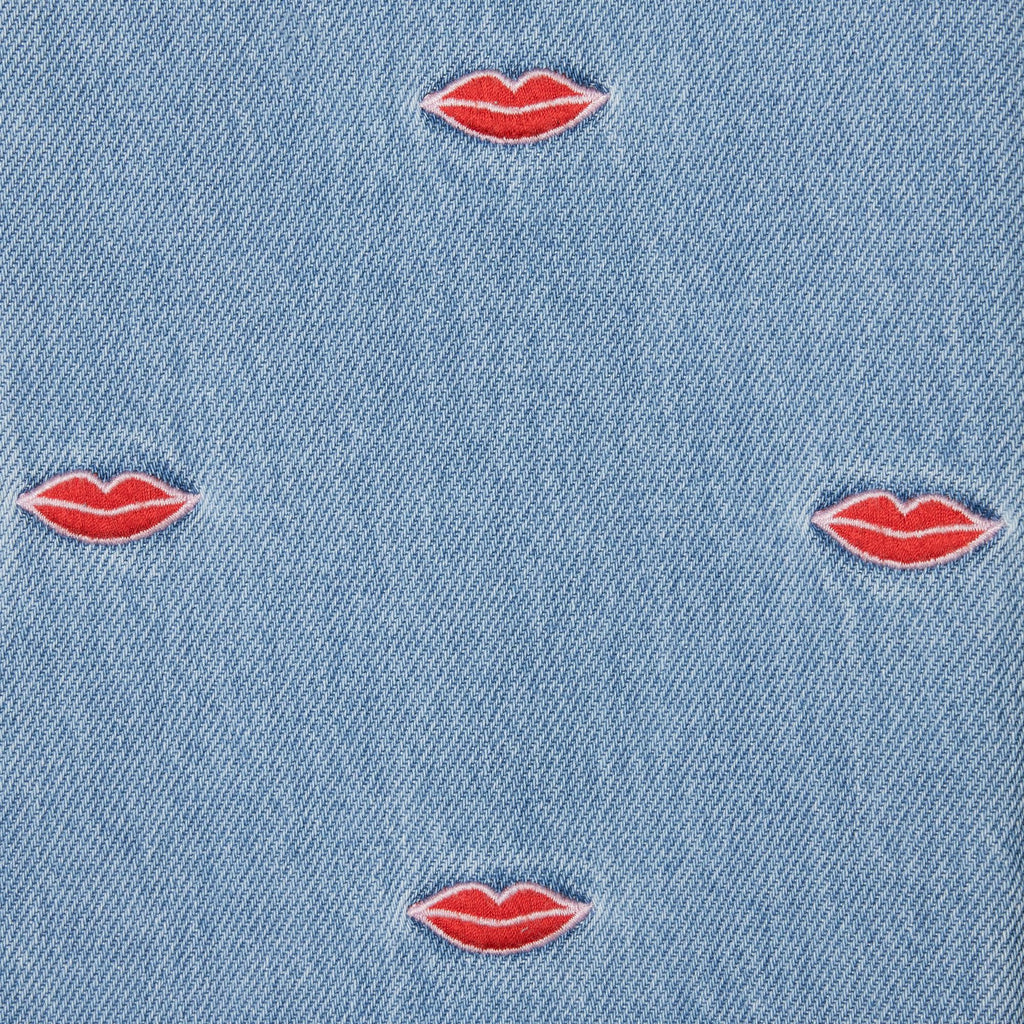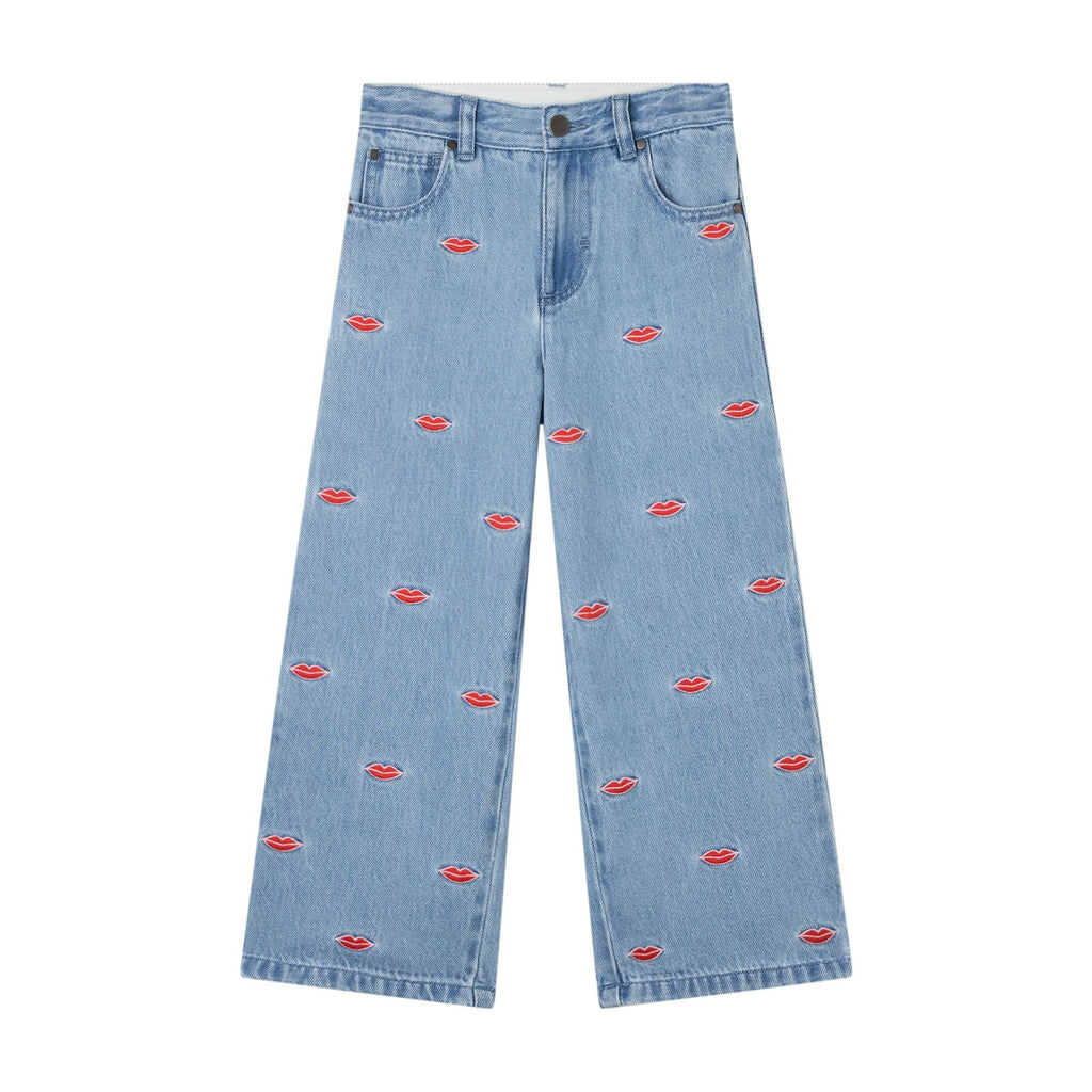 Jeans in denim blu chiaro con ricami all over per bambina